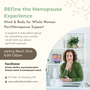 Refine the Menopause Experience: Mind & Body for Whole-Woman Support is a 6-week group designed to help women better understand what’s happening in their bodies during perimenopause and menopause, and how to support themselves through it with more clarity, energy, and confidence.